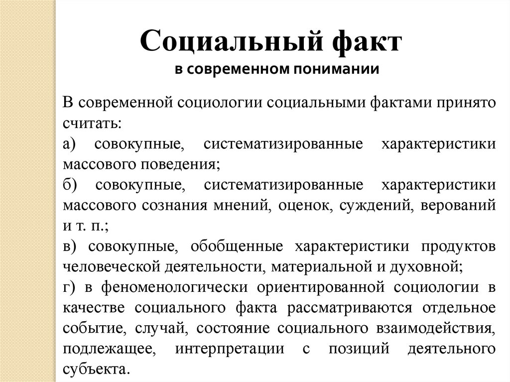 Социальный фактв современном понимании