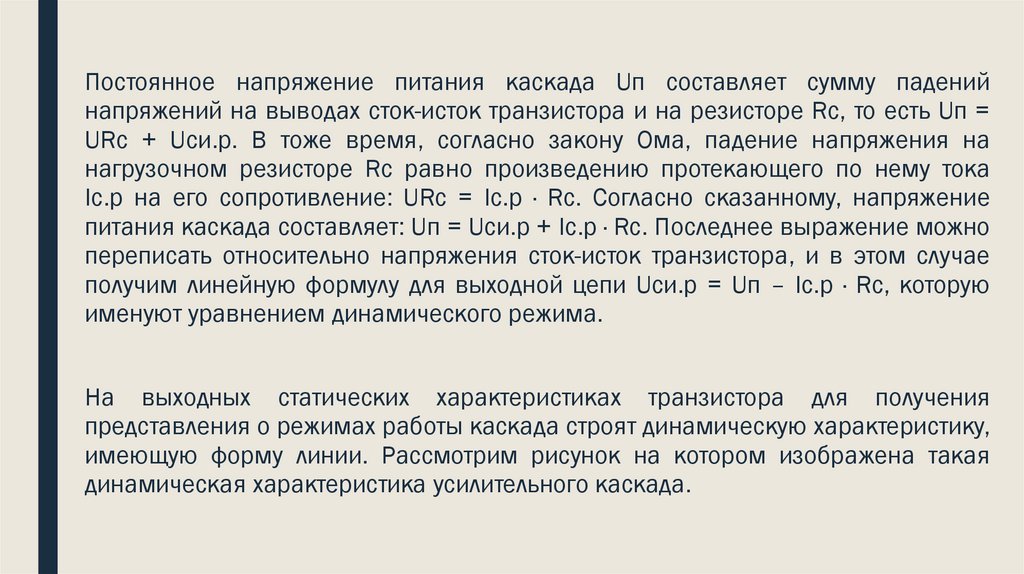 представления о режимах работы каскада строят динамическую характеристику,