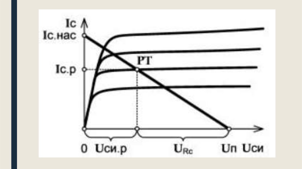 насыщения. Эта нагрузочная прямая пересекает семейство выходных