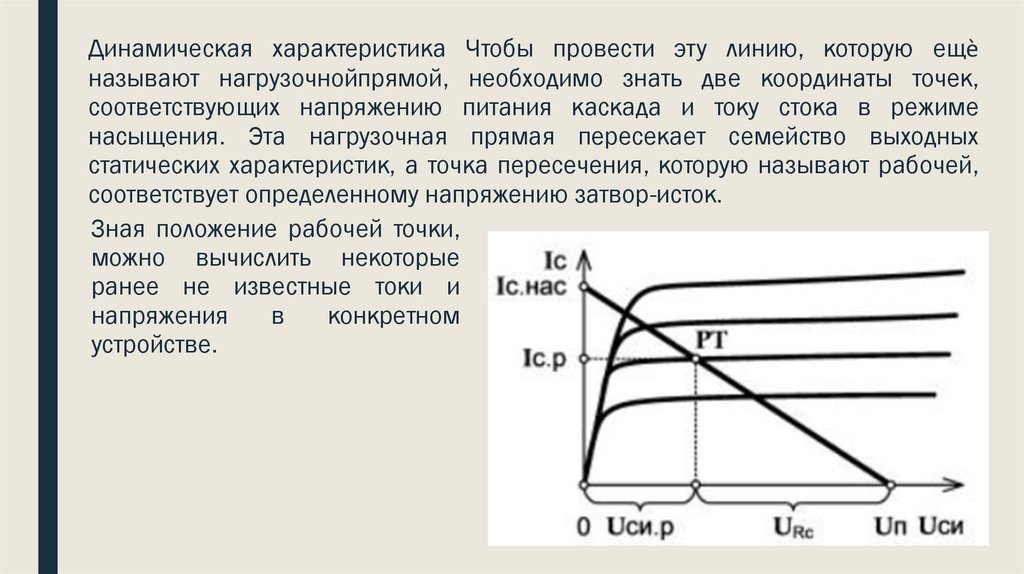 Динамическая характеристика Чтобы провести эту линию, которую ещѐназывают нагрузочнойпрямой, необходимо знать две координаты точек,