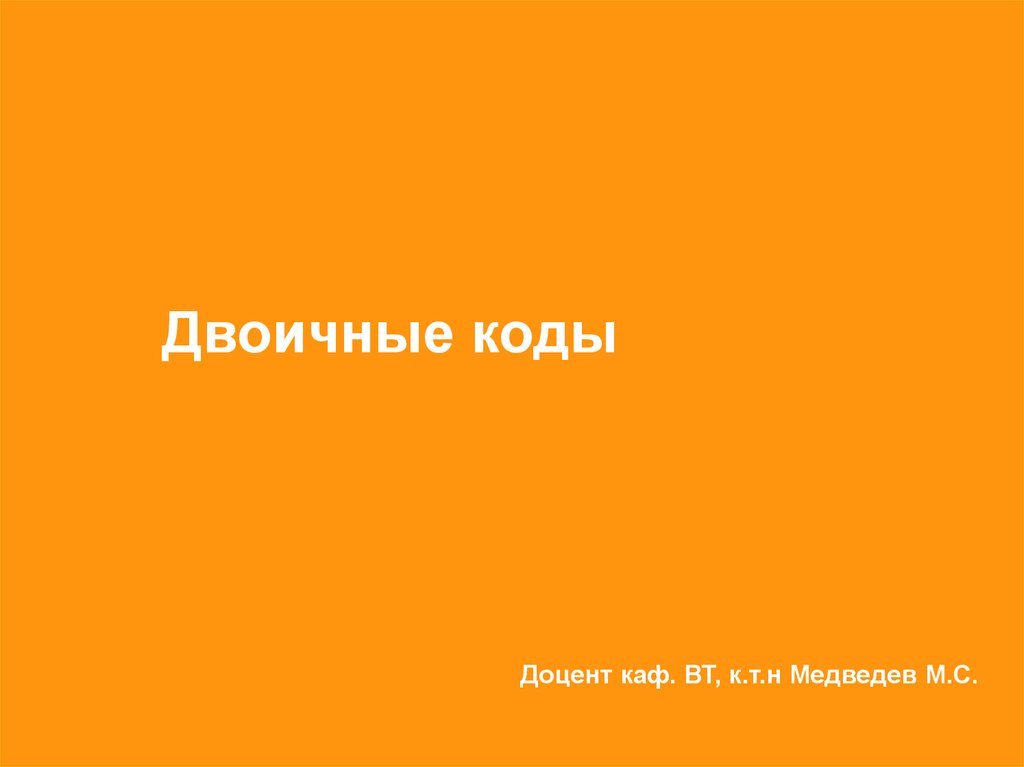 Двоичные кодыДоцент каф. ВТ, к.т.н Медведев М.С.