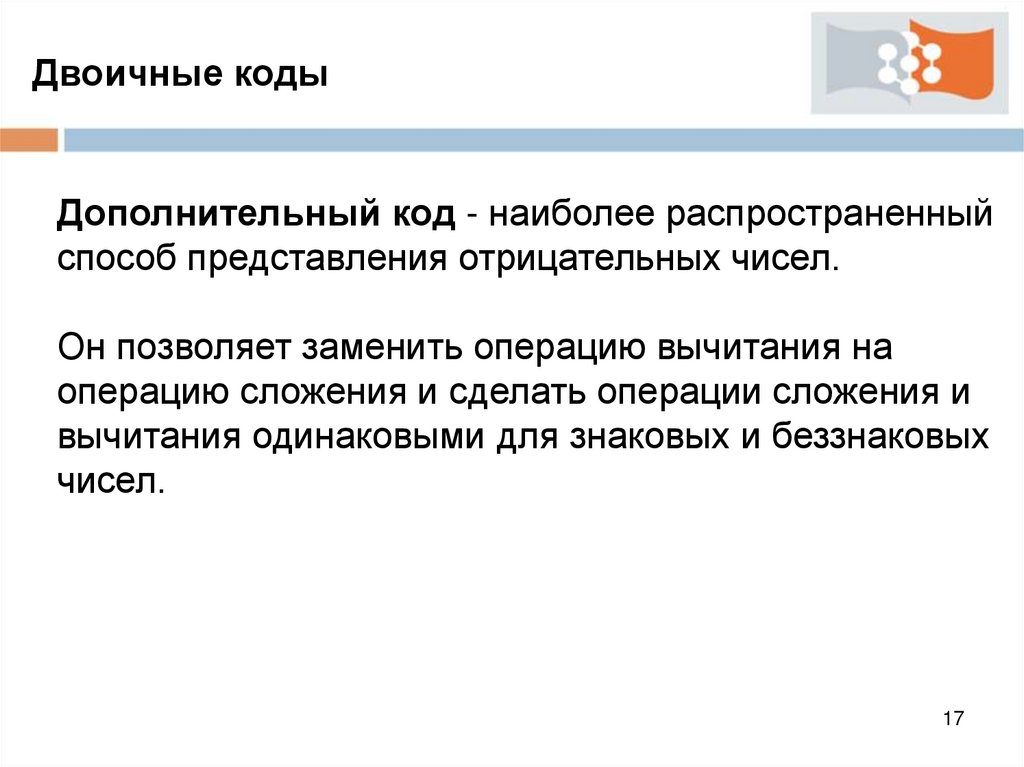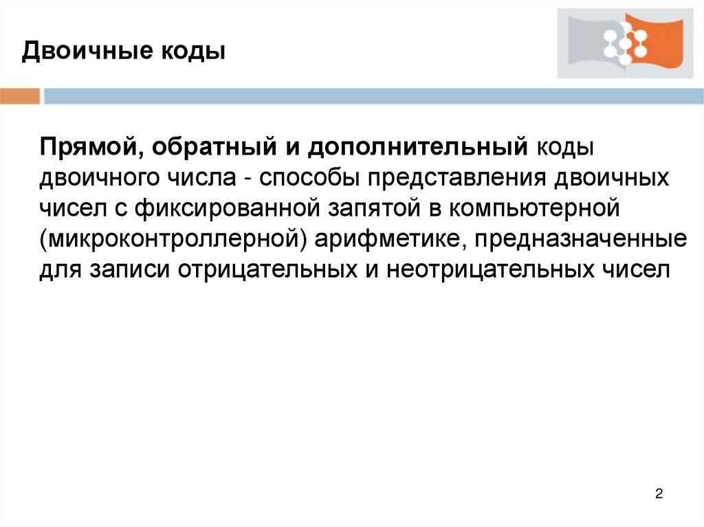 Двоичные кодыПрямой, обратный и дополнительный коды