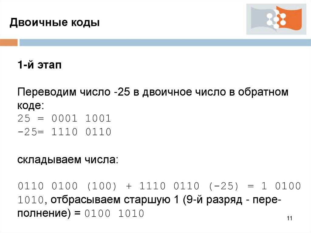 Переводим число -25 в двоичное число в обратном