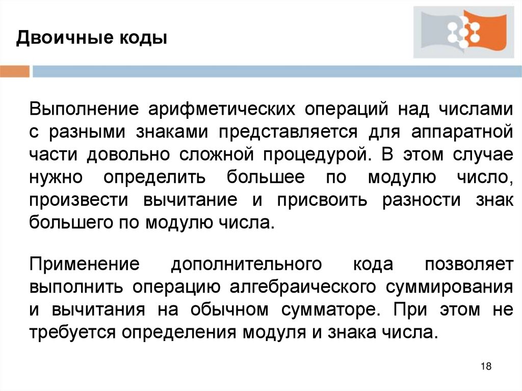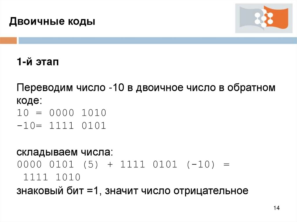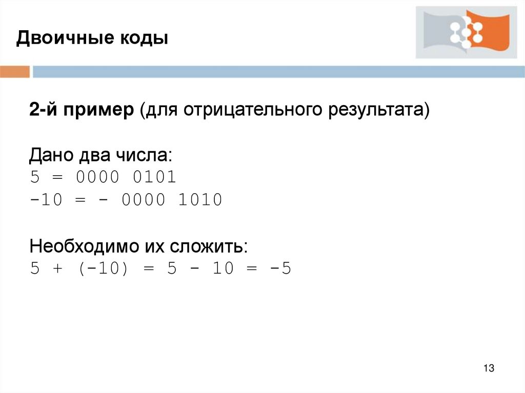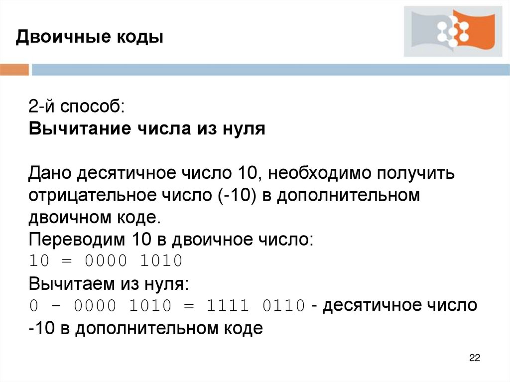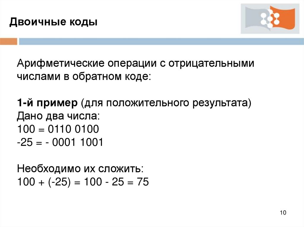 Двоичные кодыАрифметические операции с отрицательными