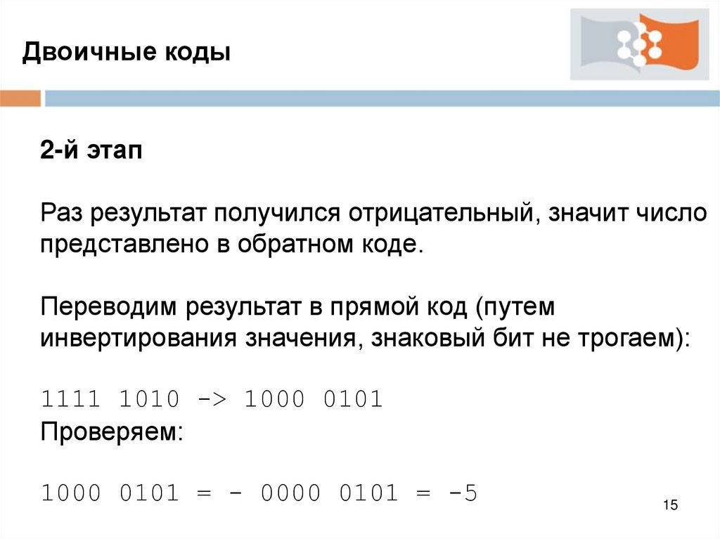 Двоичные коды2-й пример (для отрицательного результата)