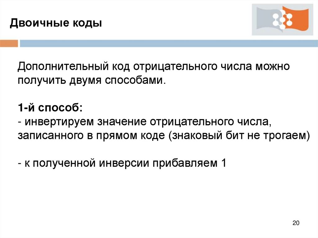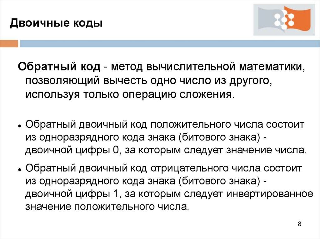 Двоичные кодыОбратный код - метод вычислительной математики,