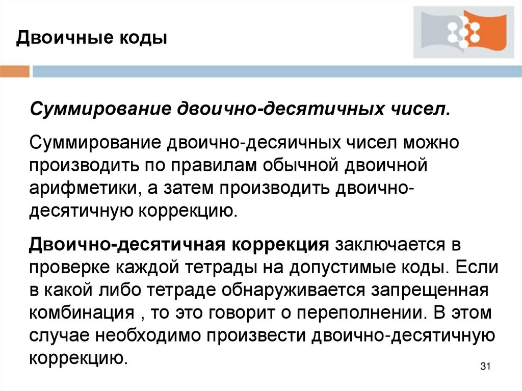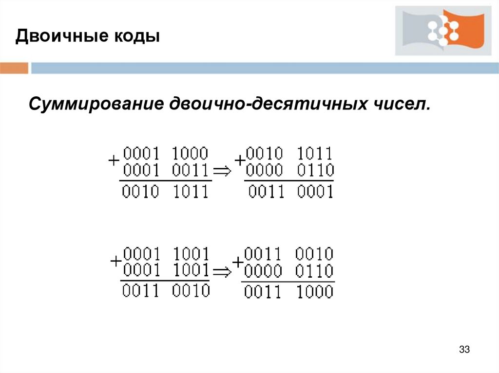 Двоичные кодыСуммирование двоично-десятичных чисел.