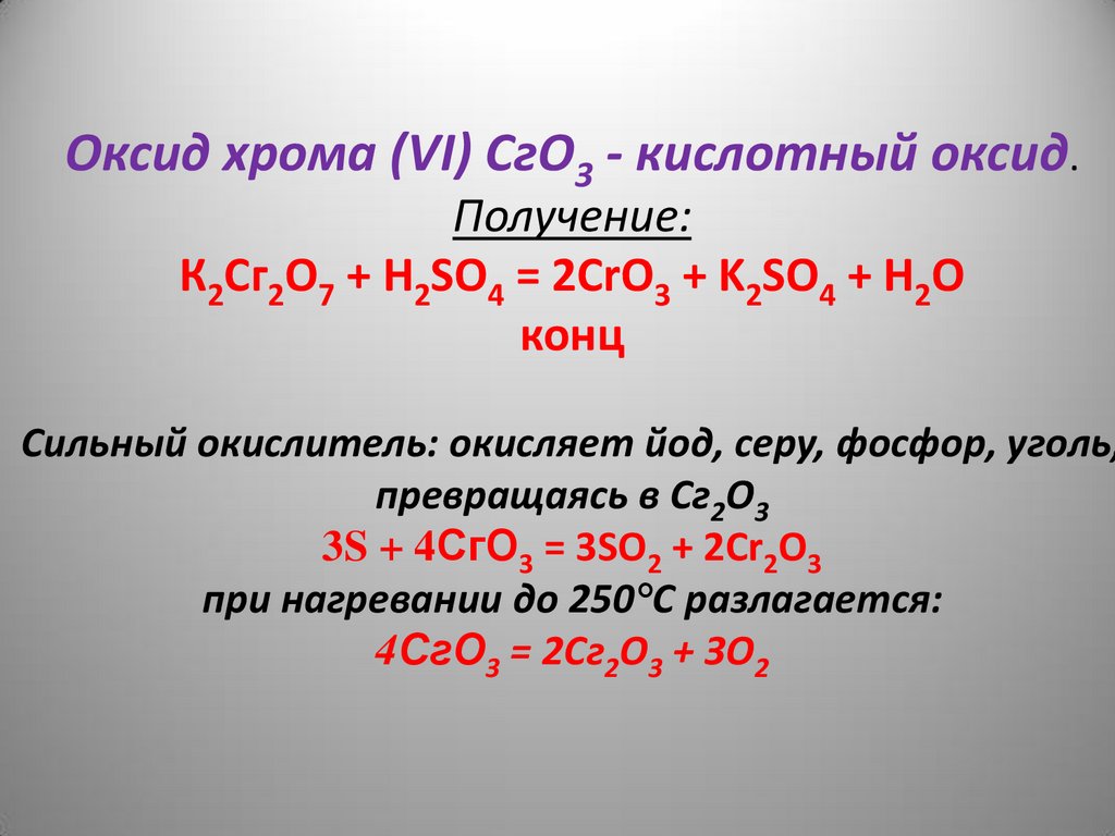 Оксид хрома (VI) СгО3 - кислотный оксид.Получение: