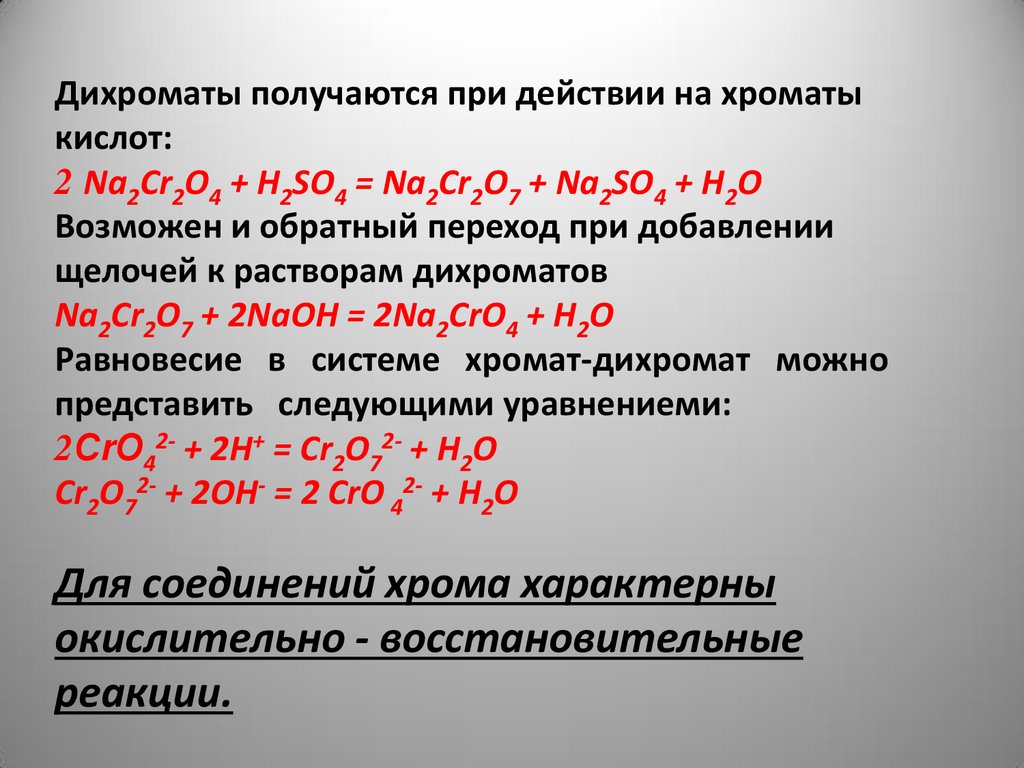 Дихроматы получаются при действии на хроматыкислот: