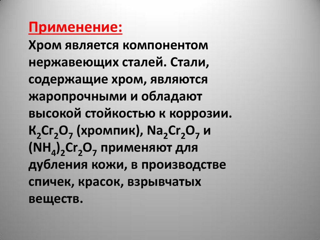 Применение:Хром является компонентом
