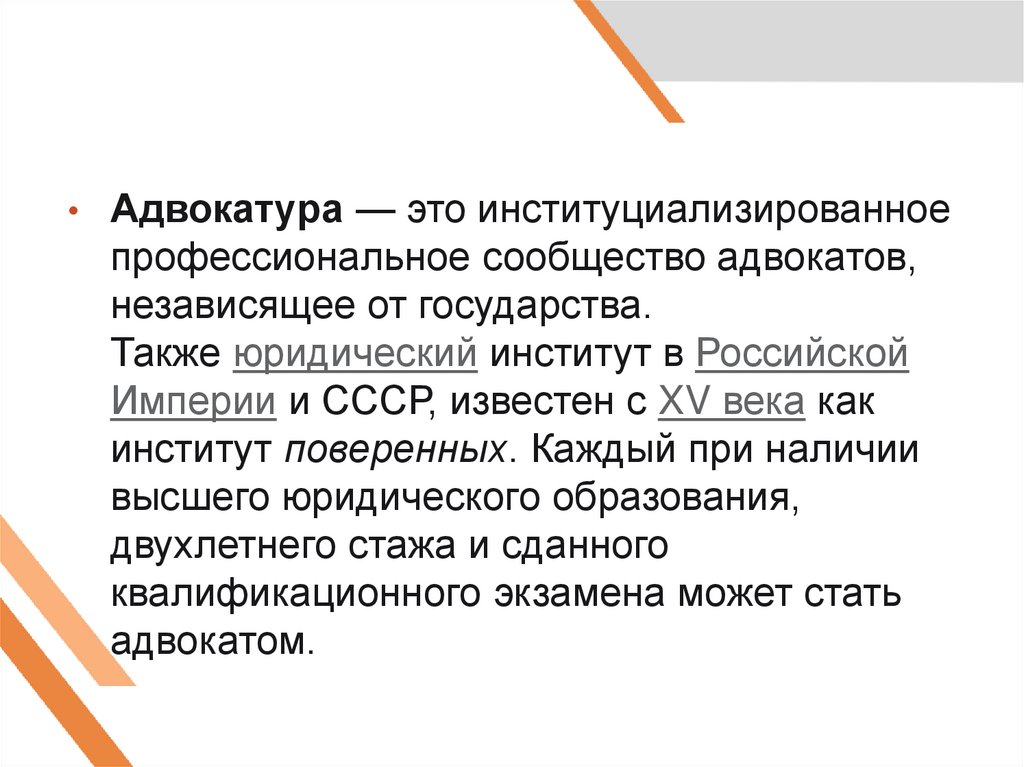 Адвокатура — это институциализированное