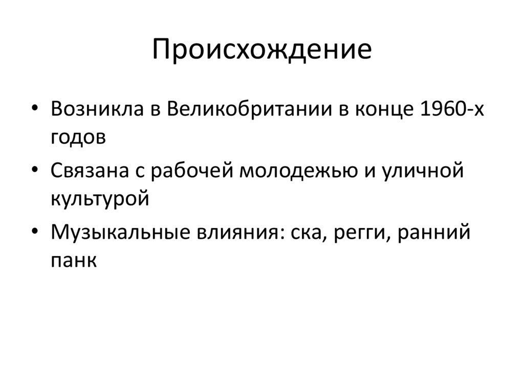 Происхождение• Возникла в Великобритании в конце 1960-х