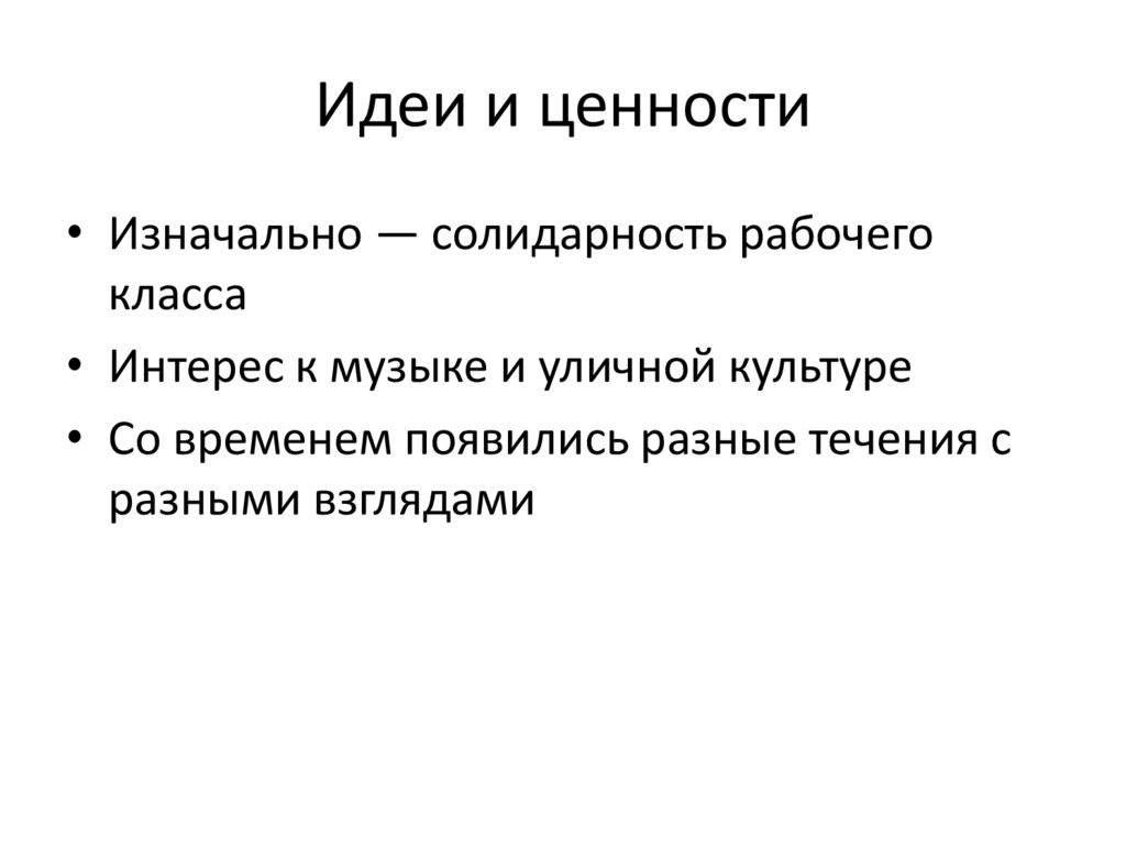 Идеи и ценности• Изначально — солидарность рабочего