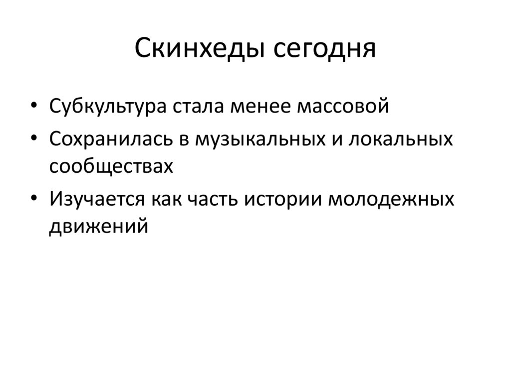 Скинхеды сегодня• Субкультура стала менее массовой
