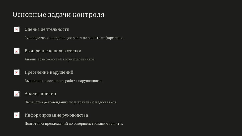 Основные задачи контроляОценка деятельности