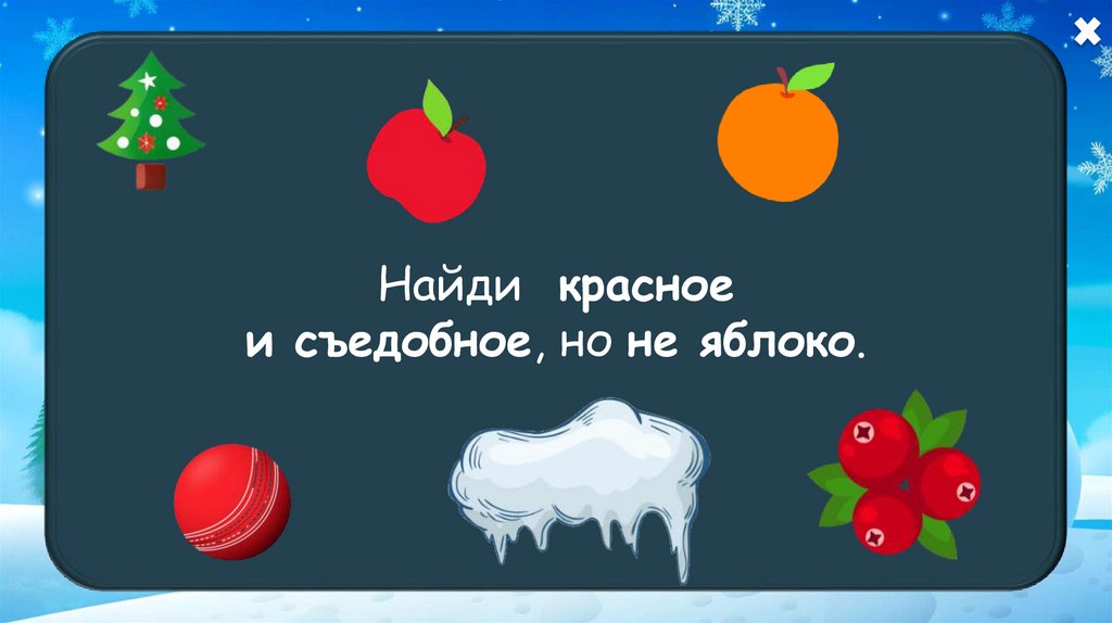 Найди красноеи съедобное, но не яблоко.