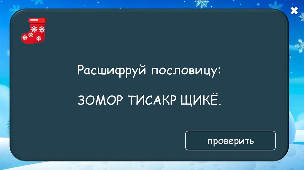 Расшифруй пословицу:ЗОМОР ТИСАКР ЩИКЁ.