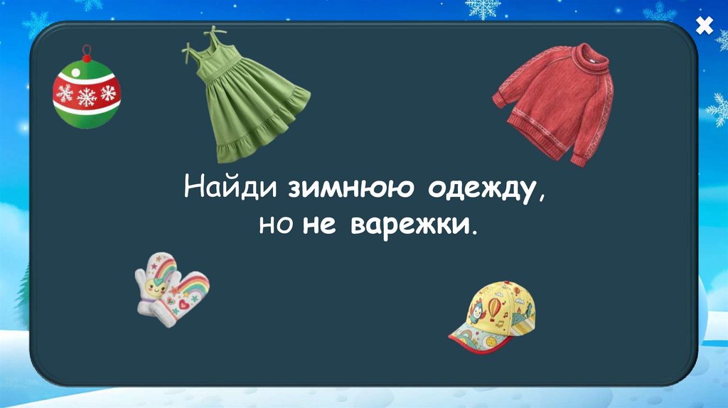 Найди зимнюю одежду,но не варежки.