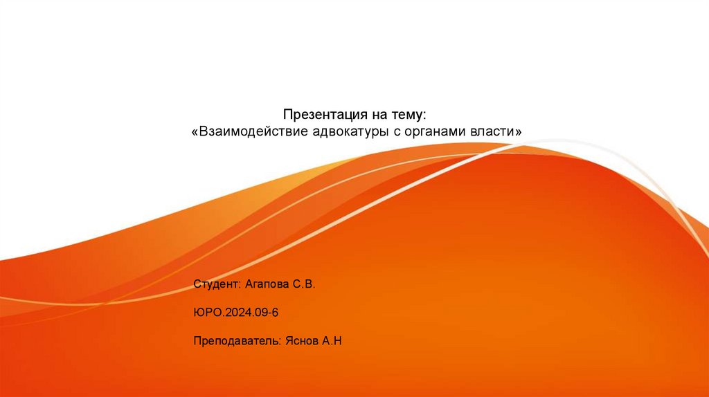 Презентация на тему:«Взаимодействие адвокатуры с органами власти»