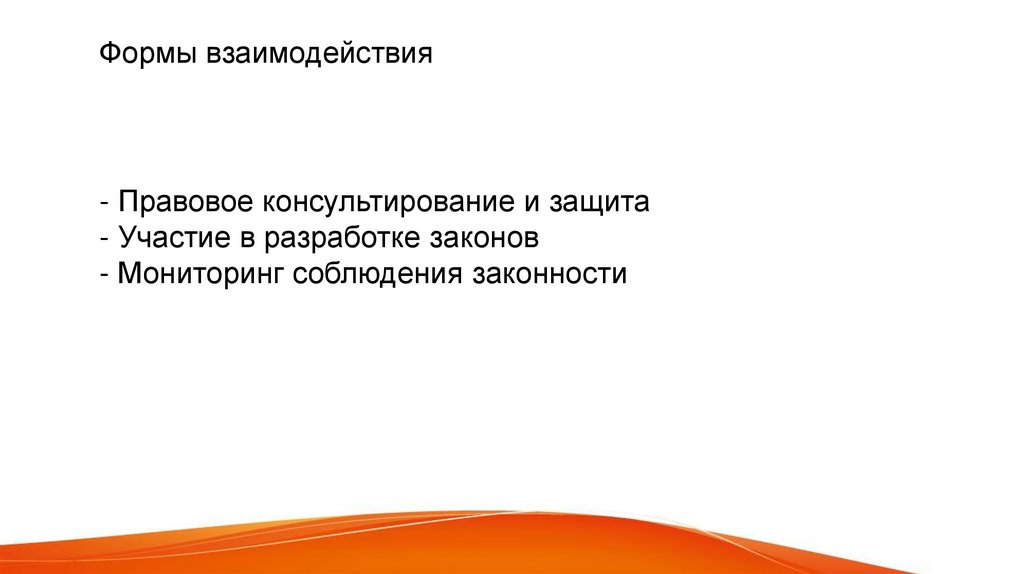 Формы взаимодействия- Правовое консультирование и защита