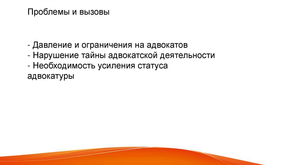 Проблемы и вызовы- Давление и ограничения на адвокатов