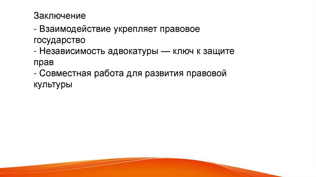 Заключение- Взаимодействие укрепляет правовое