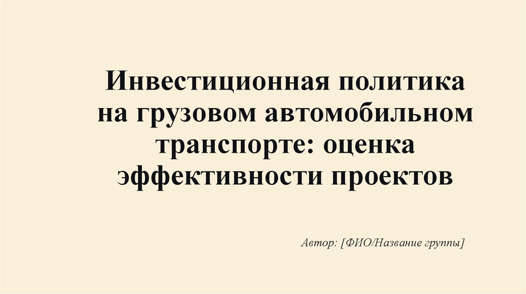 Инвестиционная политикана грузовом автомобильном