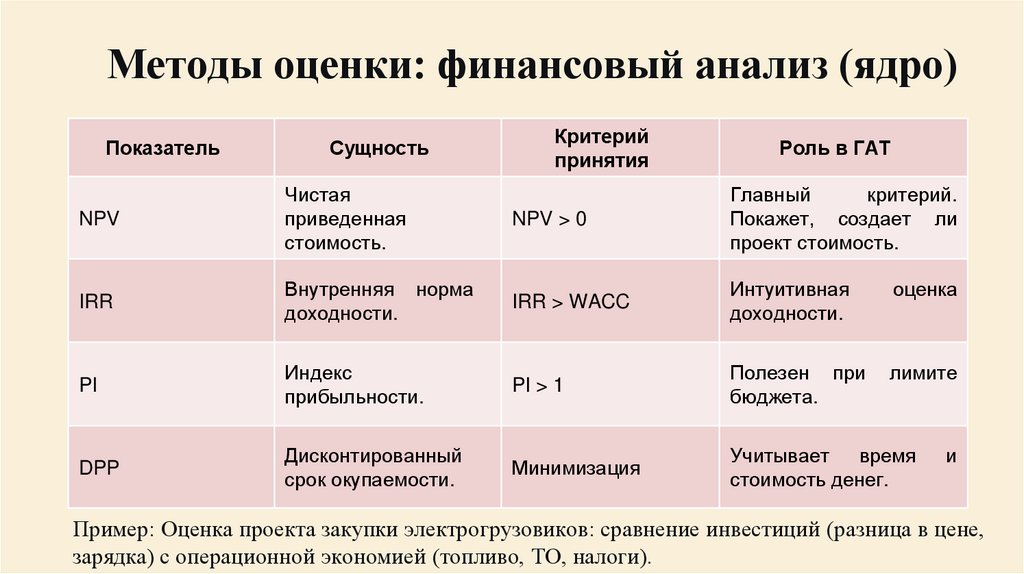 Методы оценки: финансовый анализ (ядро)Показатель