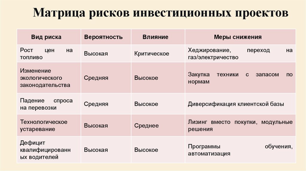 Особенности и риски инвестиционныхпроектов в ГАТ