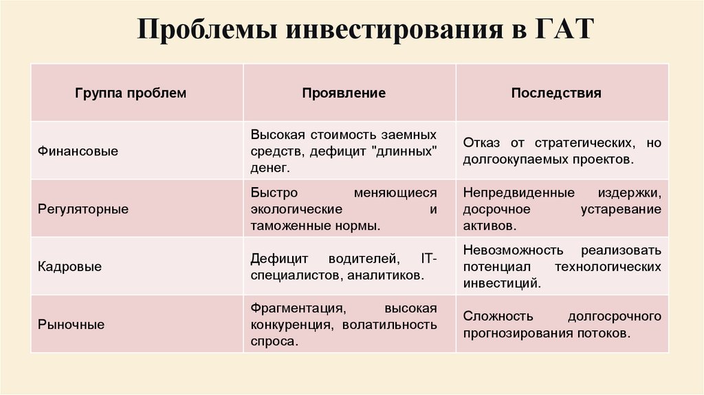 Проблемы инвестирования в ГАТГруппа проблем
