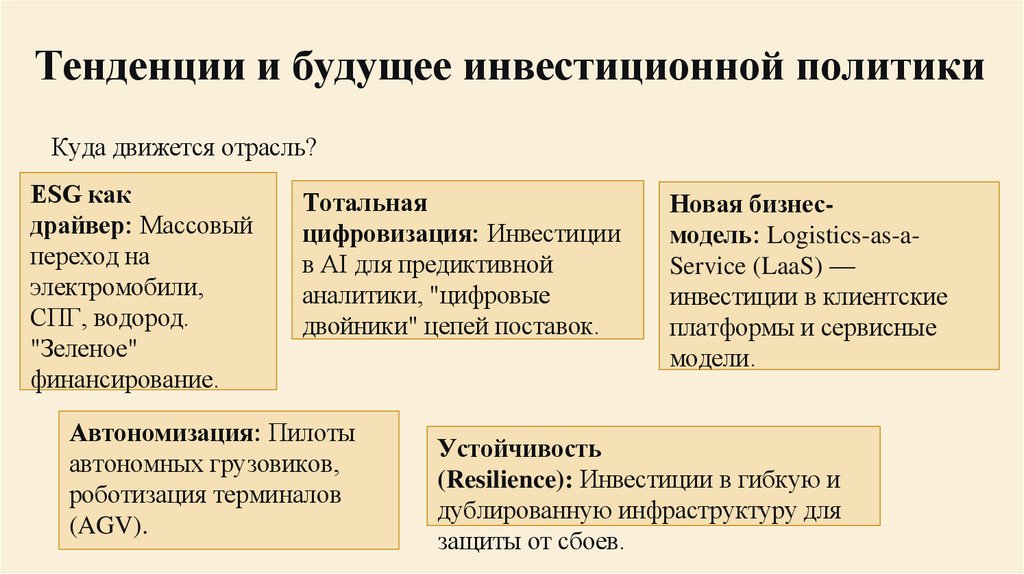 Тенденции и будущее инвестиционной политикиКуда движется отрасль?