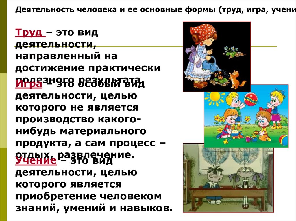 Деятельность человека и ее основные формы (труд, игра, учениТруд – это вид
