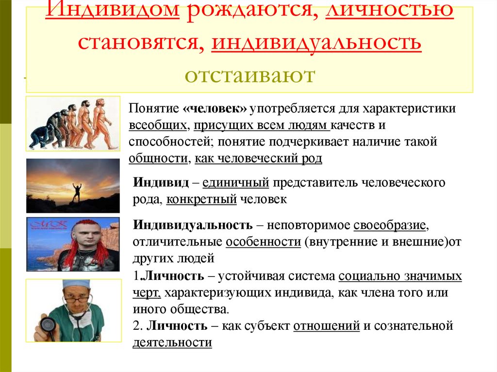 Индивидом рождаются, личностьюстановятся, индивидуальность