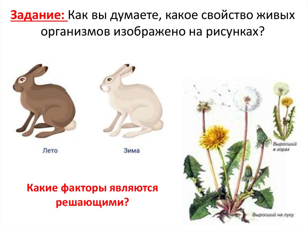1. Задание: Как вы думаете, какое свойство живых организмов изображено на рисунках?