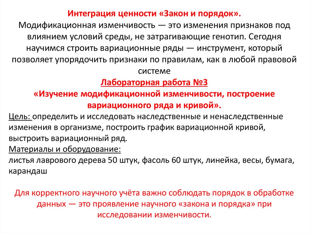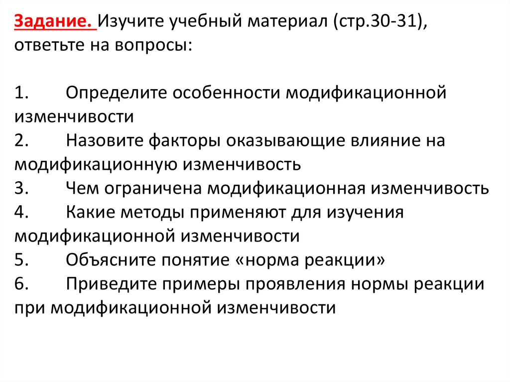 Интеграция ценности «Закон и порядок».Модификационная изменчивость — это изменения признаков под