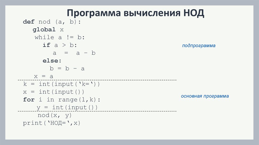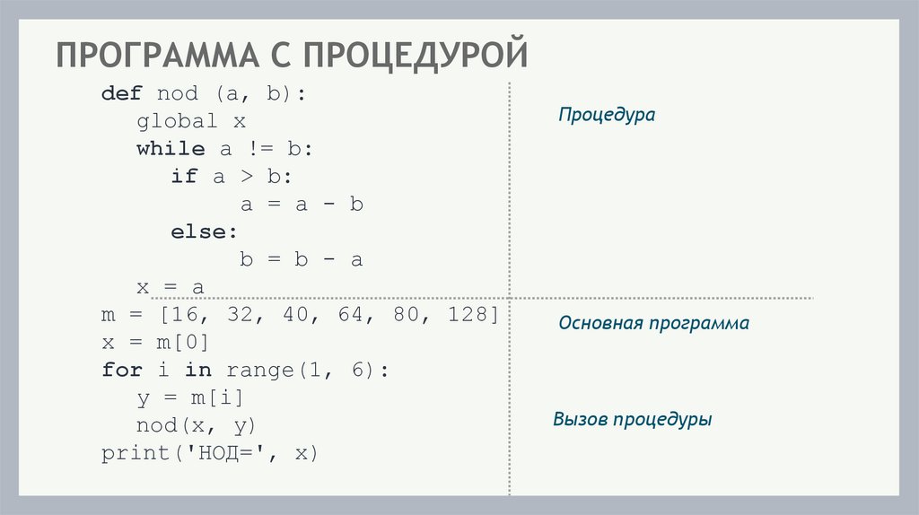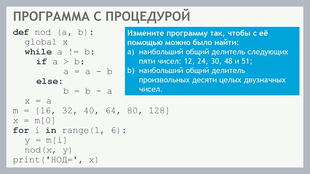 ПРОГРАММА С ПРОЦЕДУРОЙdef nod (a, b):