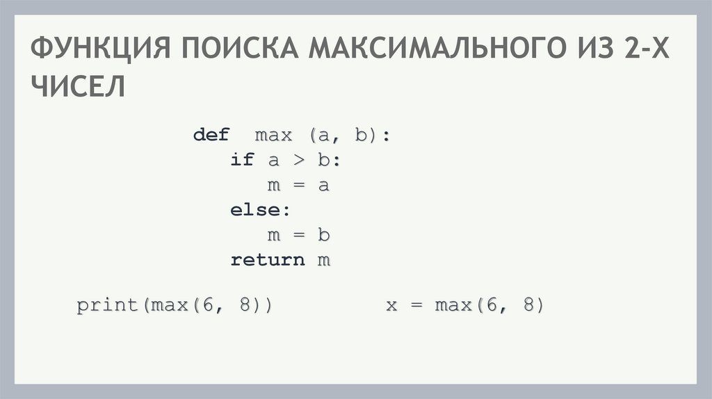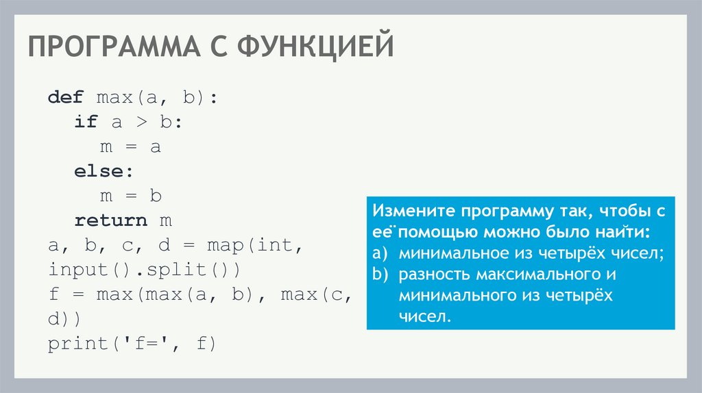 ПРОГРАММА С ФУНКЦИЕЙdef max(a, b):