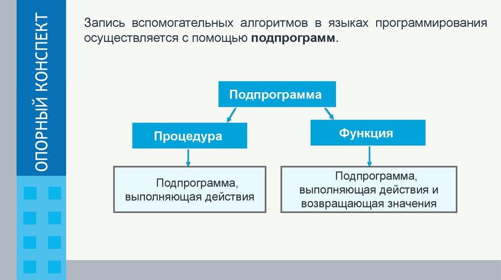ОПОРНЫЙ КОНСПЕКТЗапись вспомогательных алгоритмов в языках программирования