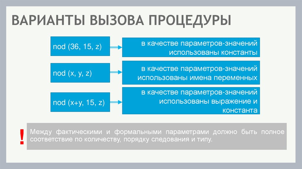 ВАРИАНТЫ ВЫЗОВА ПРОЦЕДУРЫ!