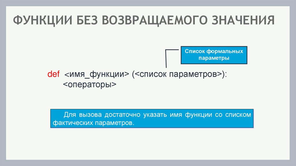 ФУНКЦИИ БЕЗ ВОЗВРАЩАЕМОГО ЗНАЧЕНИЯСписок формальных