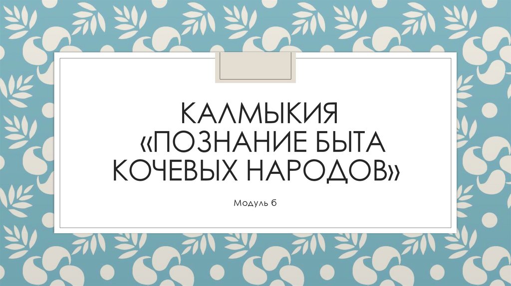 КАЛМЫКИЯ«ПОЗНАНИЕ БЫТА
