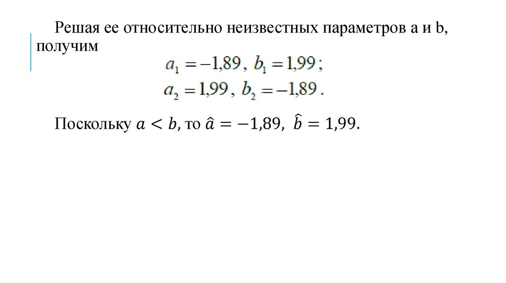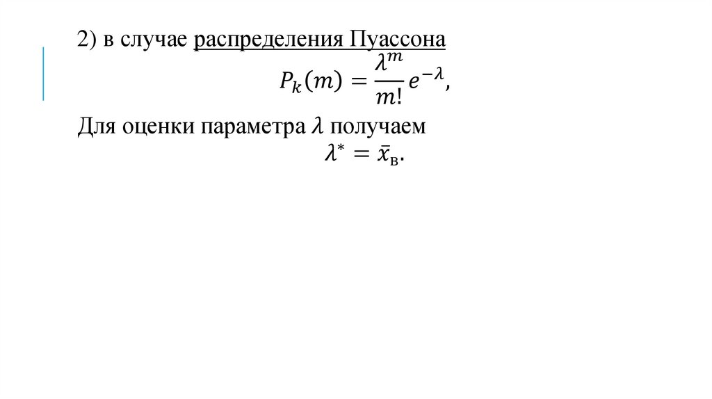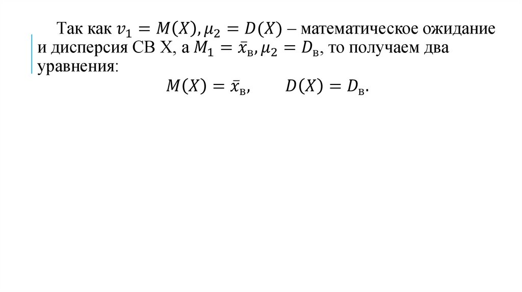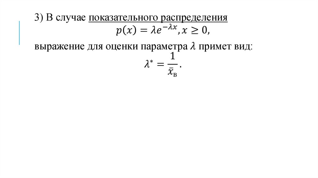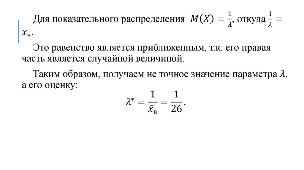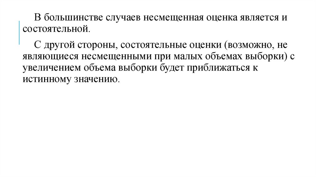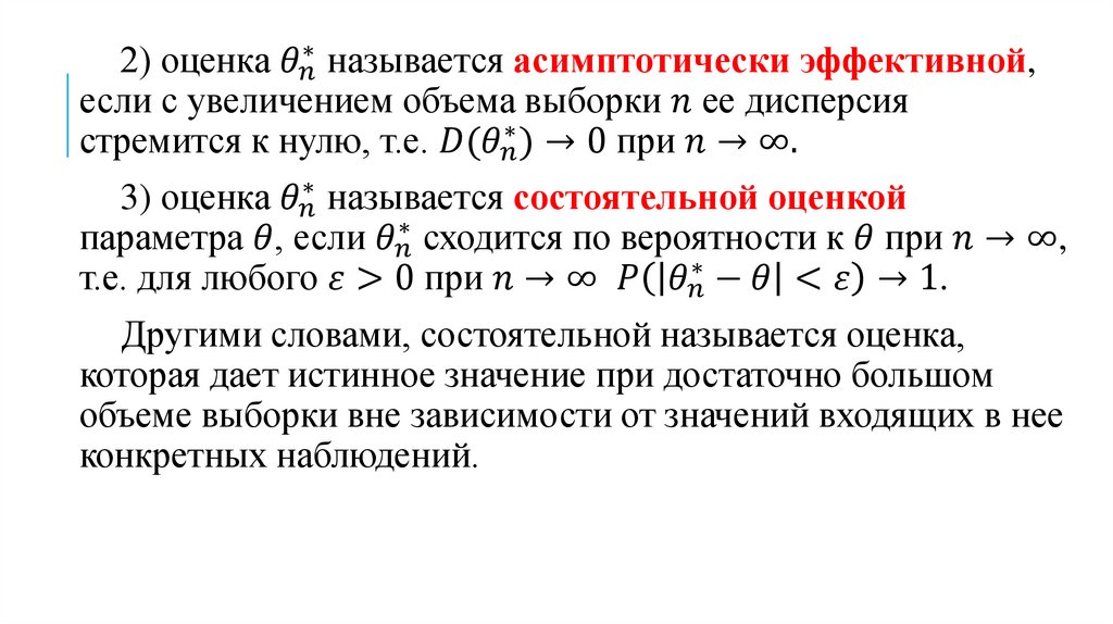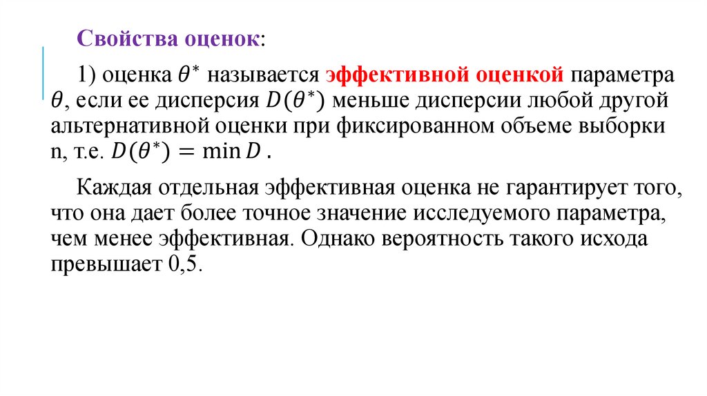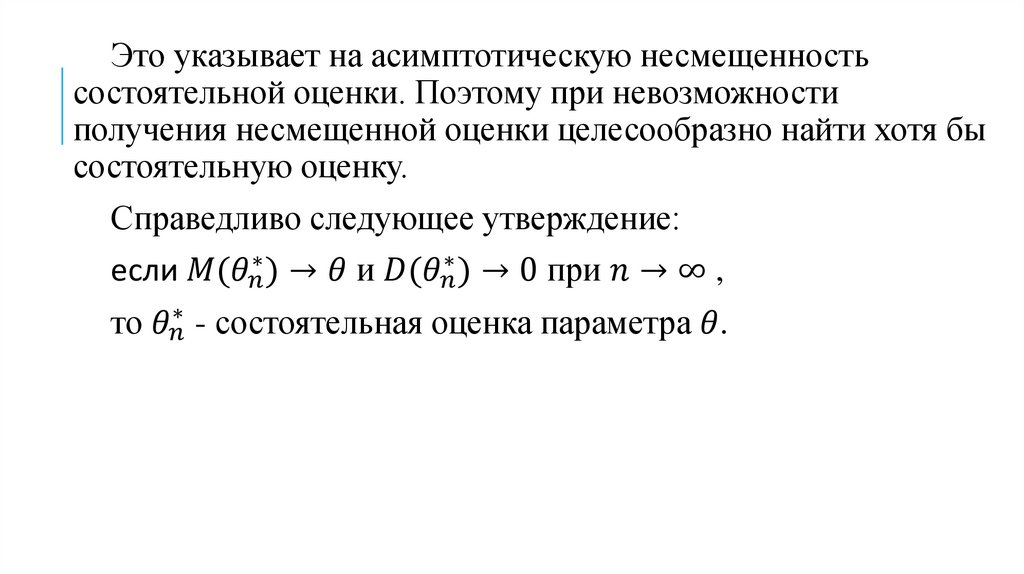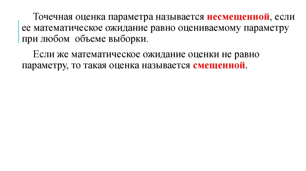 Точечная оценка параметра называется несмещенной, еслиее математическое ожидание равно оцениваемому параметру
