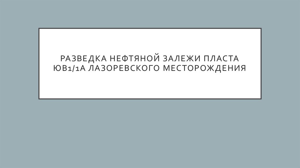 РАЗВЕДКА НЕФТЯНОЙ ЗАЛЕЖИ ПЛАСТАЮВ1/1А ЛАЗОРЕВСКОГО МЕСТОРОЖДЕНИЯ