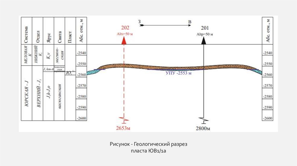 Рисунок - Геологический разрезпласта ЮВ1/1а