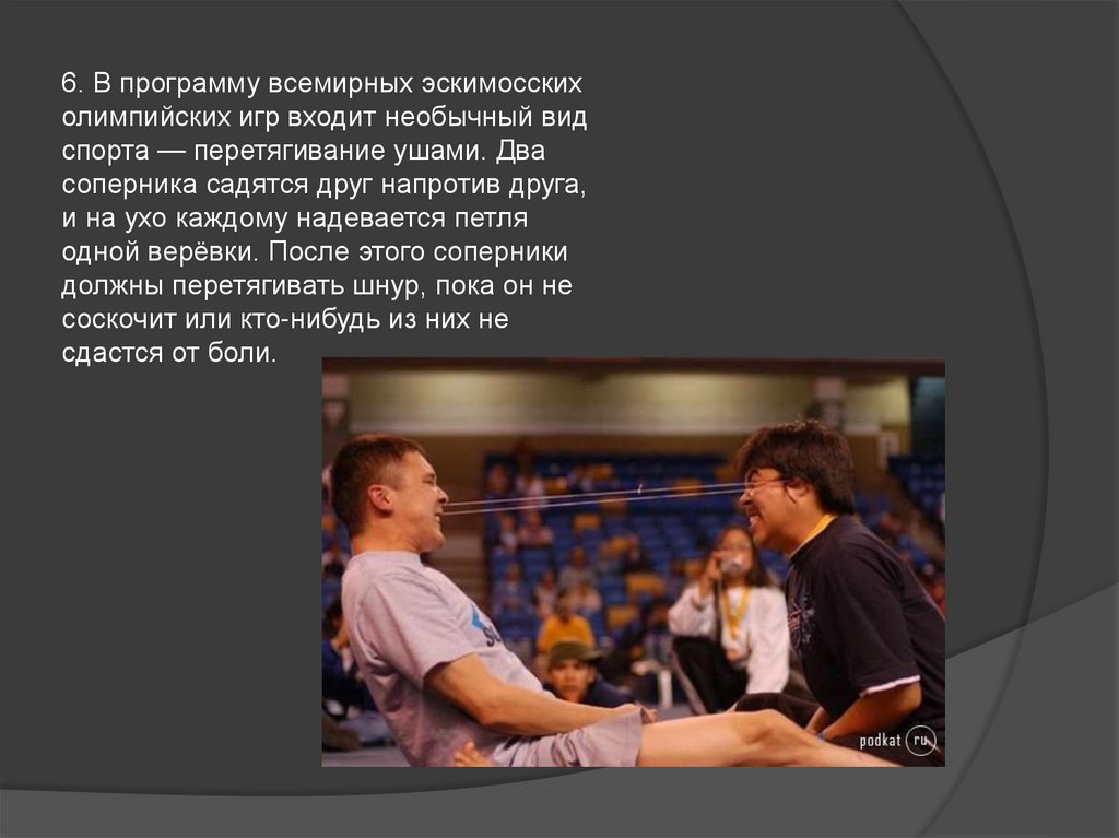 6. В программу всемирных эскимосскихолимпийских игр входит необычный вид