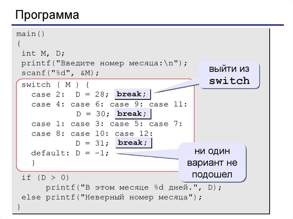 else printf("Неверный номер месяца");