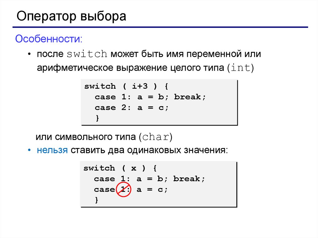 Оператор выбораОсобенности: