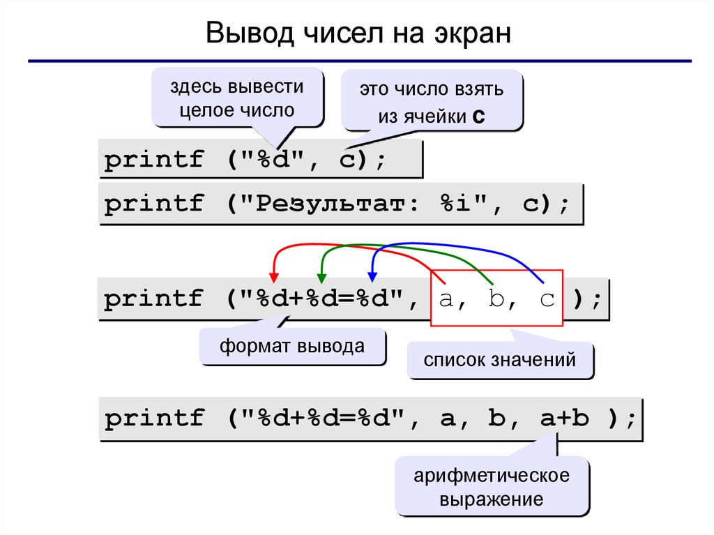 Вывод чисел на экранздесь вывести