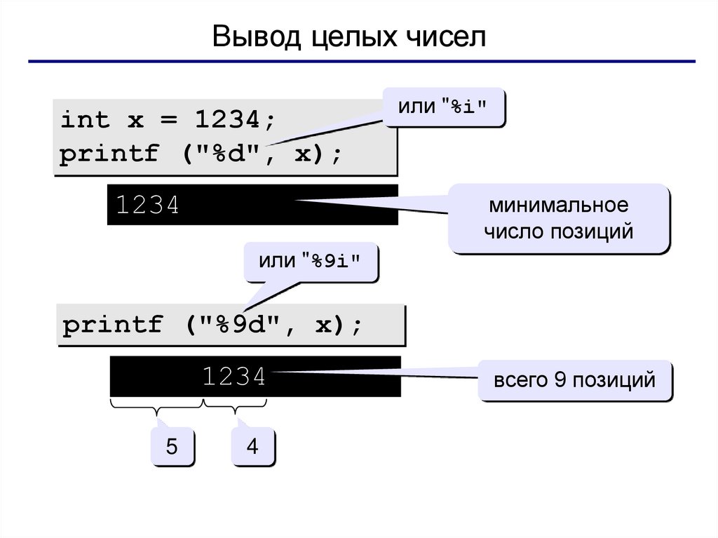 Вывод целых чиселint x = 1234;