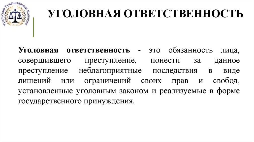 УГОЛОВНАЯ ОТВЕТСТВЕННОСТЬУголовная ответственность - это обязанность лица,